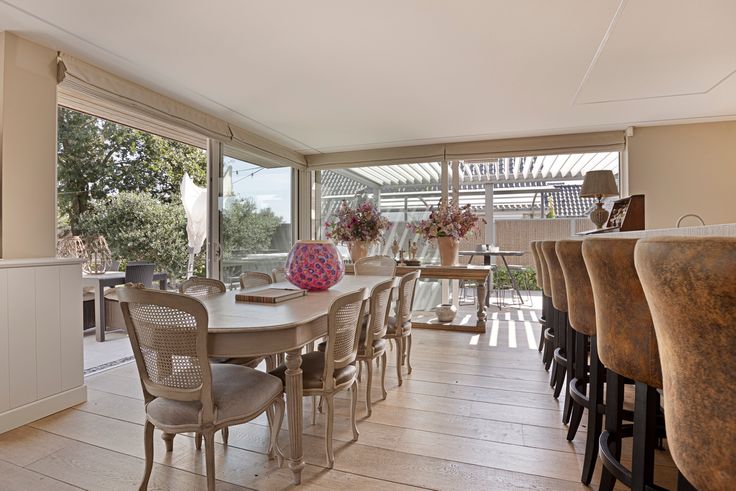 • Keuken: Een moderne, volledig uitgeruste keuken met kleiklinkervloer, ingebouwde wijnklimaatkast, en verwarming onder de toog.