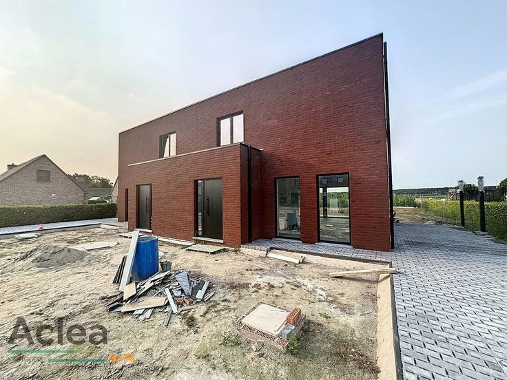 Indien u op korte termijn een bezoek ter plaatse met ons zou inplannen zal u zien dat de woningen nog in afwerkingsfase zijn, onder andere de keuken is nog niet geïnstalleerd, hiervan krijgt u wel een beeld onder het tabblad foto’s.  Op 14/09/2024 is er een eerste moment tot bezichtiging. Mogen wij u verzoeken op voorhand aan te melden en een afspraak in te plannen zodat we een volwaardige rondleiding voor u kunnen voorzien. We zullen enkel rondleidingen voorzien voor potentiële huurders.     Omschrijving Deze comfortabele nieuwbouwwoning is perfect afgewerkt, volledig geschilderd en voorzien van alle verlichting, en ligt op een perceel van ruim 500m² in een rustige omgeving met weids uitzicht op de achterliggende landbouwgrond.   Naast de inkomhal met gastentoilet bevindt zich de lichtrijke leefruimte met open keuken, voorzien van alle nodige toestellen (oven, microgolfoven, keramische kookplaat, dampkap, grote frigo met diepvriesvak). Naast de keuken is een grote berging. Er is overal vloerverwarming beneden en in de hele woning zijn er mooi gelakte volle binnendeuren. Op de eerste verdieping bevinden zich een nachthall, 3 slaapkamers waarvan de masterbedroom met extra dressing, een afzonderlijk toilet, een mooi afgewerkte badkamer met douche en meubel met dubbele lavabo, en een extra aparte berging. Vloerverwarming is voorzien in de badkamer en nachthall. De woning heeft een geschat E-peil van 23, maar dit dient nog bevestigd te worden. Buite... Renovatieplicht: onbekend