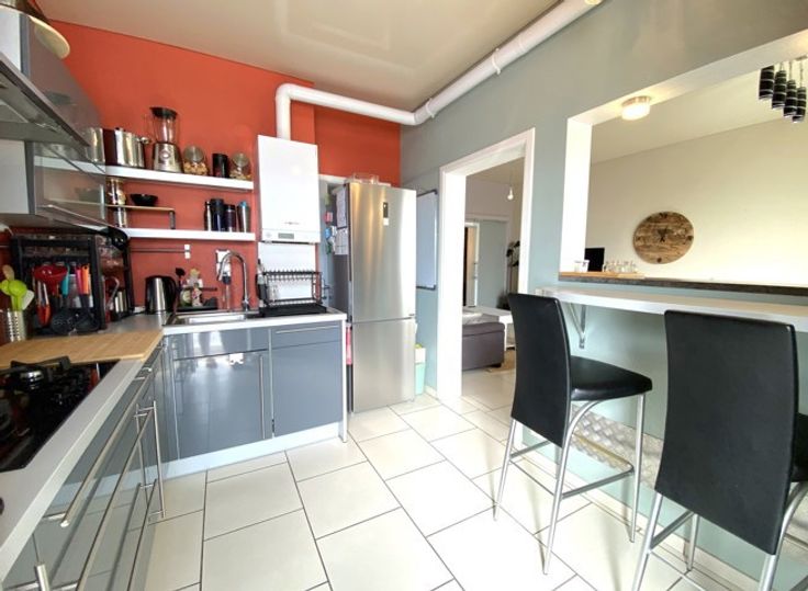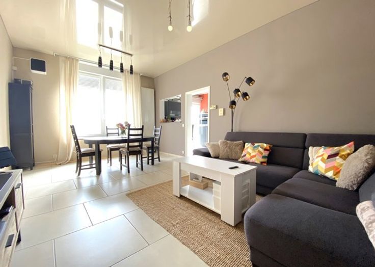 Dans un souci d'efficacité, demandes de visites souhaitées par MAIL ! Au REZ-DE-CHAUSSEE de l'immeuble, très bel appartement (2ch + bureau/dressing) avec terrasse couverte, et garage. Spacieux, agréable, et fonctionnel, il se compose comme suit : - S/sol : cave. - Rdc : hall d'entrée, vaste séjour, cuisine semi-ouverte hyper-équipée, deux chambres, bureau/dressing, salle de douche, et buanderie (av. wc). Eléments de confort : CC gaz (chaudière Viessmann 2020), châssis pvc 2x vitrage, volets électriques et manuels, etc. Petite résidence calme et soignée. (Bail : 1 an (reconductible). - Provision mensuelle de 40 € (charges et entretien des communs). - EL : par expert et à frais partagés. - GL : 2 mois de loyer). Belle situation : possibilité de tout faire à pied, à proximité directe de la gare d'Andenne, des commerces, écoles, transports en commun, et grands axes routiers. Libre le 05 novembre 2024. Intéressés ? CONTACTEZ-NOUS ! (Visites assurées le samedi 07 septembre 2024 de 09.00 heures à 10.30 heures).