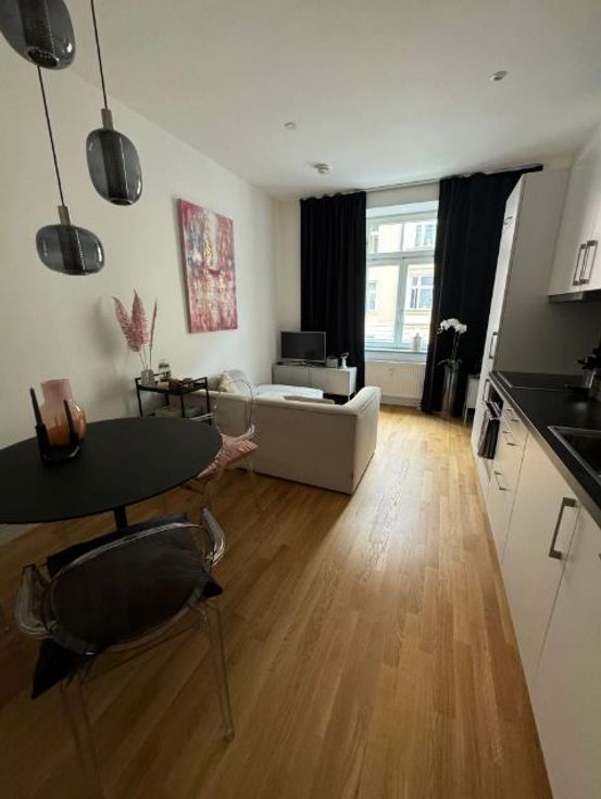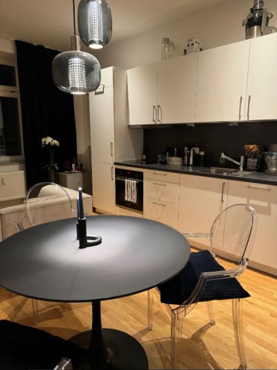 Cet appartement d'une pièce de 38 m², récemment rénové, est entièrement meublé et comprend une salle de bain avec douche et une cuisine équipée d'une cuisinière, d'un four, d'un lave-vaisselle, d'un grand réfrigérateur et d'un congélateur. L'appartement dispose d'un nouveau lit boxspring avec rangements, d'un coin repas, d'un canapé et d'un espace de travail avec un bureau escamotable. Un lave-linge séchant est disponible au sous-sol, et il est possible de souscrire à une connexion fibre optique (non incluse dans le loyer). La propriété, rénovée en 2023, est en excellent état et offre une section de cave spacieuse, un espace de stockage pour vélos et une petite cour.