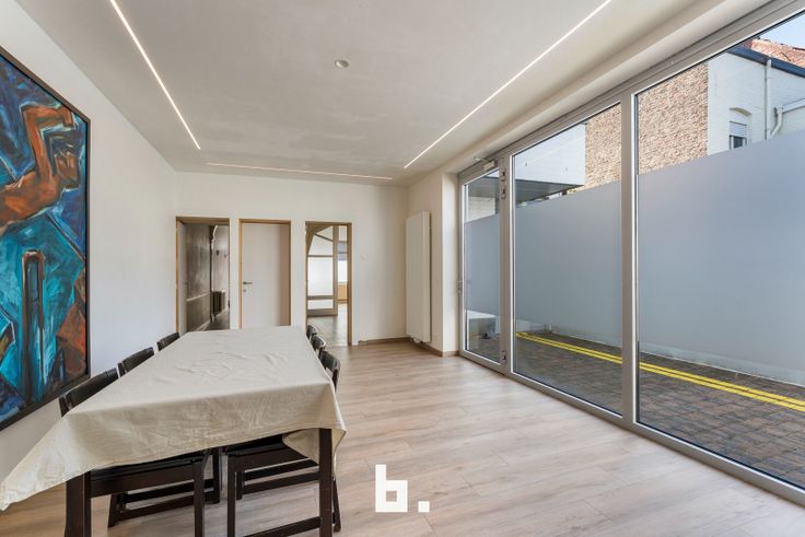 De gelijkvloerse verdieping van het pand, ooit een kinepraktijk, biedt talloze mogelijkheden voor zelfstandigen. De authentieke stijl van deze ruimte zorgt voor een extra touch aan deze woning. Boven, op de eerste verdieping, vindt u een ruime en lichtrijke leefruimte, samen met een moderne keuken die directe toegang biedt tot een ruim zonneterras.