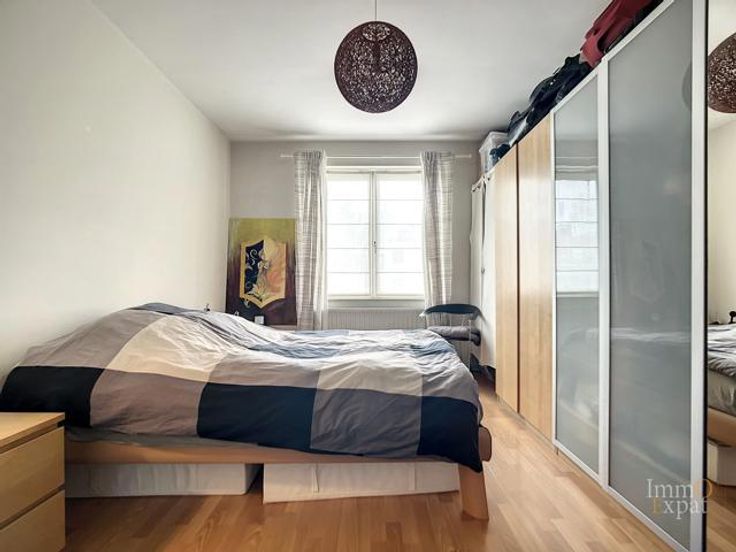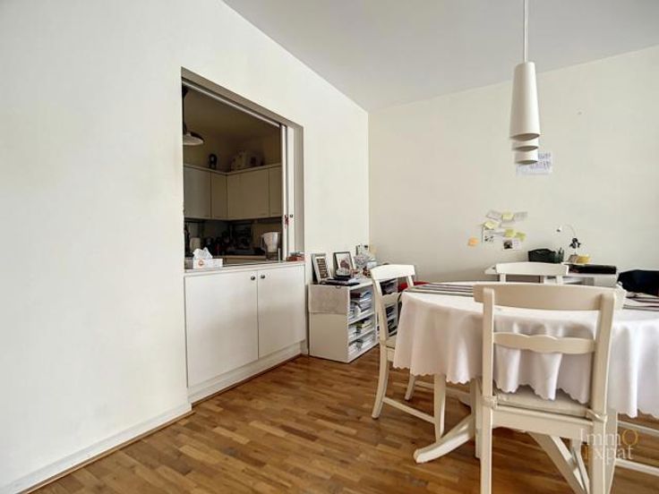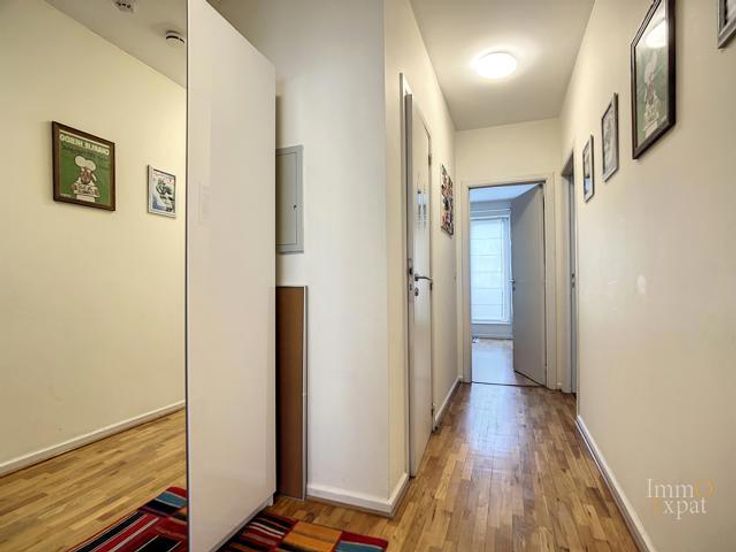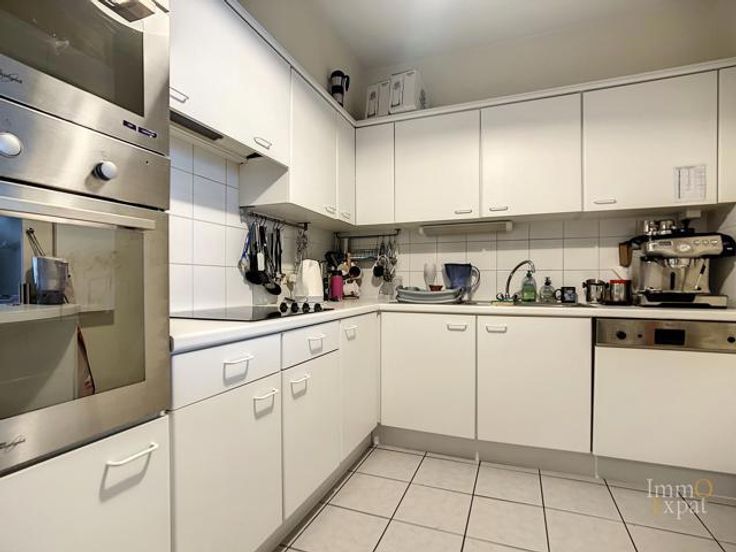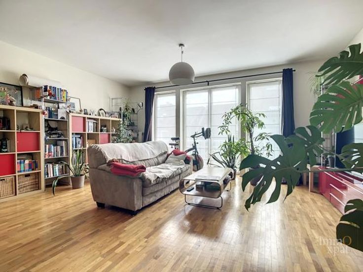 At 1050 Ixelles, Avenue de l'Hippodrome, a stone's throw from the Etangs d'Ixelles, on the 4th floor of a 5-story building with elevator, apartment composed as follows: Entrance hall of +/- 10 m²; Living room of +/- 40 m²; Equipped kitchen of +/- 7.5 m² (ceramic hob, hood, oven, microwave, fridge, freezer, dishwasher); Individual toilet of +/- 1.5 m² (WC, hand basin); Bedroom 1 of +/- 14.5 m² opening onto a shower room of +/- 5 m² (walk-in shower, double sink, heated towel rail); Bedroom 2 of +/- 10 m² opening onto a bathroom of +/- 2.5 m² (bath, hand basin) as well as onto a terrace of +/- 2 m² facing east. Equipment: Parlophone, Common gas boiler. PEB= C. Electrical installation in conformity to regulations. Cellar of +/- 3 m² on -1. Bike storage. Possibility of additional parking space for an amount of 30,000 euros. Common charges = +/- 300 euros/month provision for heating, water and building costs and +/- 135 euros for the reserve fund. Private charges = Electricity, Internet, ... Annual property tax = 1645 euros (RC 1812). If this property interests you, please send us your contact details and visiting availability by email to INFO@IMMOEXPAT.BE