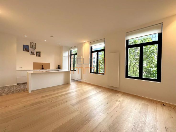 Luxueux appartement 2 chambres très lumineux au deuxième étage dans une belle maison de maître avec entrée cochère, petite copropriété, comprenant beau séjour/cuisine/salle à manger, belle cuisine US full équipée en marbre, 2 chambres avec dressing et salle de bain attenante (évier et douche à l'italienne), belle terrasse, parquet en chêne clair partout, toilette séparée, vidéophone, stores sur mesure, système simple flux...Entièrement rénovée avec goût et matériaux de qualité. Cet appartement combine luminosité, confort et modernité. Idéalement situé dans un quartier très dynamique proche de tout! NEUF. Belle cave et grand local vélo (REZ). petite copropriété (4 unités), PEB C.