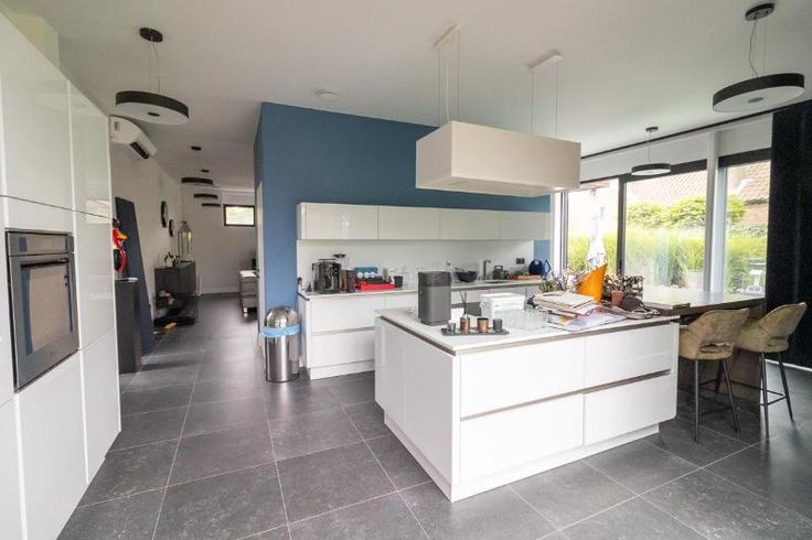 Dit pand wordt op internet verkocht van 14/10/2024 tot 22/10/2024. Een moderne nieuwbouwwoning met aangelegde tuin en zwembad. Op het gelijkvloers zijn meerdere kantoorruimtes voorzien. Op het 1e verdiep is er een inkomhal, een wc-ruimte, een grote leefruimte (voor een zit- en eethoek en keuken). Op het 2e verdiep bevinden zich 3 slaapkamers, waarvan 1 met dressing en badkamer, alsook nog een afzonderlijke badkamer. De verkoop geschiedt volledig onder toepassing van het verkooprecht. De dienst omgeving van de stad Tongeren heeft per mail dd. 1/8/2024 en 8/8/2024 het volgende meegedeeld: - "Bij controle van de oblieke beelden blijkt dat keerwanden niet bekleed werden zoals opgelegd in de vergunning. Bovendien merken we op, dat de voorgevel ngoedkeurde plannen werd uitgevoerd. De garagepoort werd vervangen door een raam. Bovendien werd de bestemmingswijziging van garage naar kantoor niet aangevraagd en bijgevolg is dit een niet-vergunde situatie. De parkeerplaats achteraan op het perceel, bereikbaar via de Riksingenstraat werd niet vergund." - "De bestemmingswijziging kan gunstig geadviseerd worden op voorwaarde dat de oppervlakte minder dan 100 m² bedraagt en gekoppeld blijft van de woning. De bijhorende gevelwijziging kan ook gunstig geadviseerd worden. De kantoorruimte heeft hetzelfde huisnummer als de woning en kan niet worden afgesplitst." De keerwand van de trap dient alsnog bekleed te worden met esthetisch verantwoorde materialen. De parkeerplaats langs de Riksingenstraa