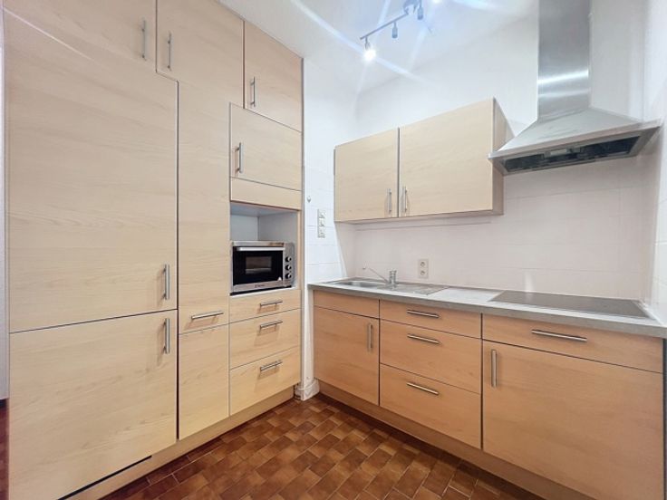 WOLUWE-SAINT-LAMBERT, rustige woonwijk, niet ver van openbaar vervoer, winkels en Rodebeekpark. Grote, lichte sutio met ± 50m² bewoonbare oppervlakte, bestaande uit een inkomhal, een super ingerichte keuken die uitgeeft op de leefruimte, een badkamer met wasmachine, apart toilet en een kelder. Beschikbaar per direct. Voorziening voor lasten: €130/maand (warm en koud water, verwarming, conciërge en gemeenschappelijke ruimtes). EPB: G*. INFORMATIE OVER LIGGING TREVI: 02.340.24.94.