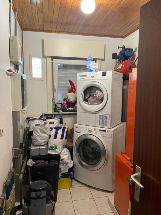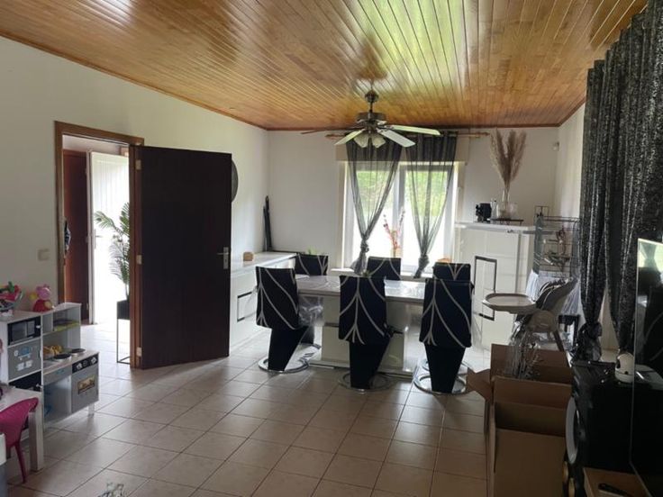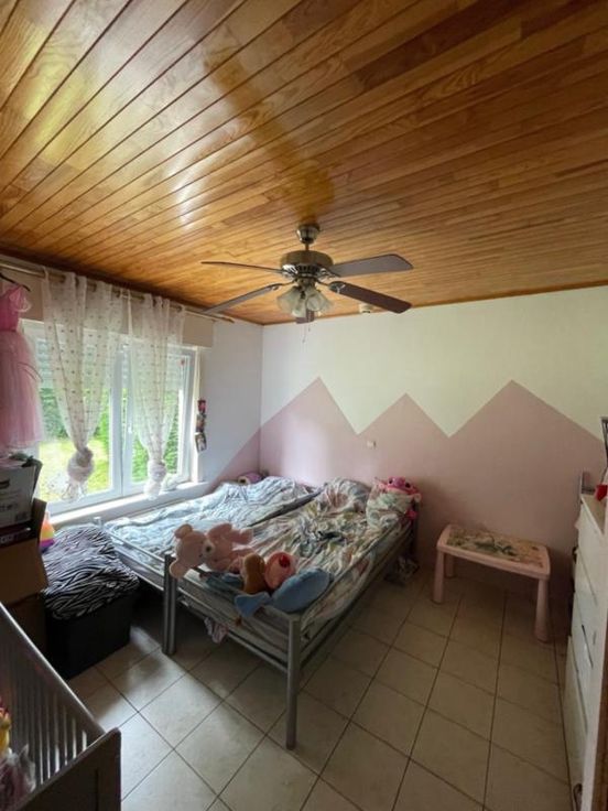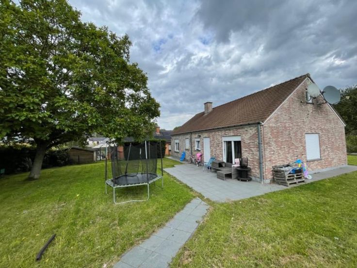 Très jolie maison quatre façades avec garage composée d'un salon-salle à manger; cuisine semi-équipée; toilettes; salle de bains, buanderie; deux chambres et un grenier Double vitrage et volets (non électriques). Pas d'égout (fosse septique) et une citerne d'eau uniquement connectée sur un robinet de la buanderie.