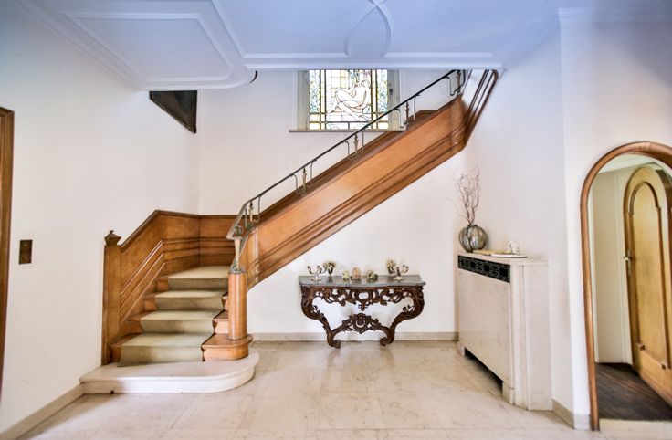 LAEKEN / Koninklijke Wijk, ideaal gelegen, dicht bij de belangrijkste wegen, het stadscentrum, de luchthaven van Brussel, verschillende verbindingen met het openbaar vervoer (metro, bus en tram), scholen (waaronder de Europese School), prachtige villa in art-decostijl van ± 470m² op een terrein van 11 are en 65 centiares. Gebouwd tussen 1942 en 1946 door architect MOENAERTS (Voorzitter van de Kamer van Architecten) voor de familie VANDER ELST (eigenaars van de sigarettenmerken Bastos & Belga). De prachtige tuin werd ontworpen door de bekende landschapsarchitect JANLET. Het omvat: inkomhal, woonkamer van 40m² met open keuken, volledig uitgeruste keuken met ontbijthoek, bibliotheek met open keuken, kitchenette, 4 slaapkamers (25m², 25m², 30m² en 12m²), dressing, 3 badkamers en 1 douchekamer, kelder en wijnkelder, sauna, garage en buitenparking. Alle oppervlaktes zijn ter informatie. Technische aspecten: alarmsysteem, gasketel, dubbele beglazing. EPB: F-, 41kg CO2/(m².an). Villa vergelijkbaar in stijl en uitvoeringsniveau met het David & Alice VAN BUUREN museum in Ukkel. Mogelijkheid tot aankoop van het achterste perceel om een bijgebouw te bouwen. Een must-see! INFORMATIE TREVI NORD: 02.410.10.30