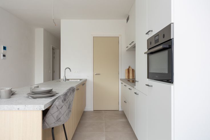 Het appartement op de 1e verdieping heeft een zuid-oost gericht terras van 12m², grenzend aan de achterzijde aan de keuken/leefruimte. Er zijn 2 volwaardige slaapkamers met airco, een apart gastentoilet met handenwasser, een praktische wasberging, een badkamer met dubbele lavabo en inloopdouche, volledig geïnstalleerde keuken. Er moeten geen keuzes voor afwerking meer gemaakt worden, het appartement is instapklaar! Enkel de schilderwerken en aansluitingskosten voor nutsvoorzieningen zijn niet inbegrepen in de prijs. Een garagebox kan erbij gehuurd worden, deze bevindt zich in de Doorvertraetelei.