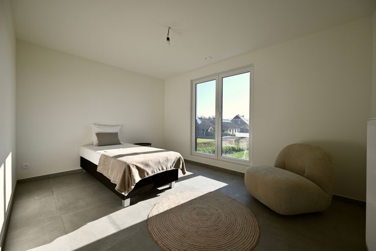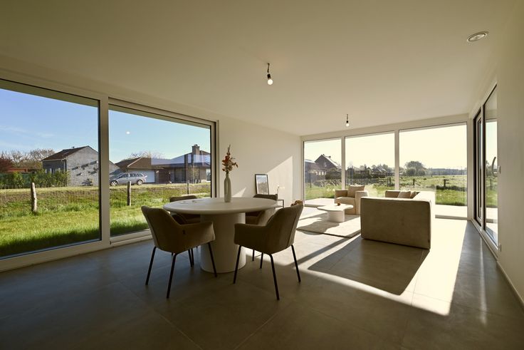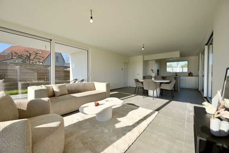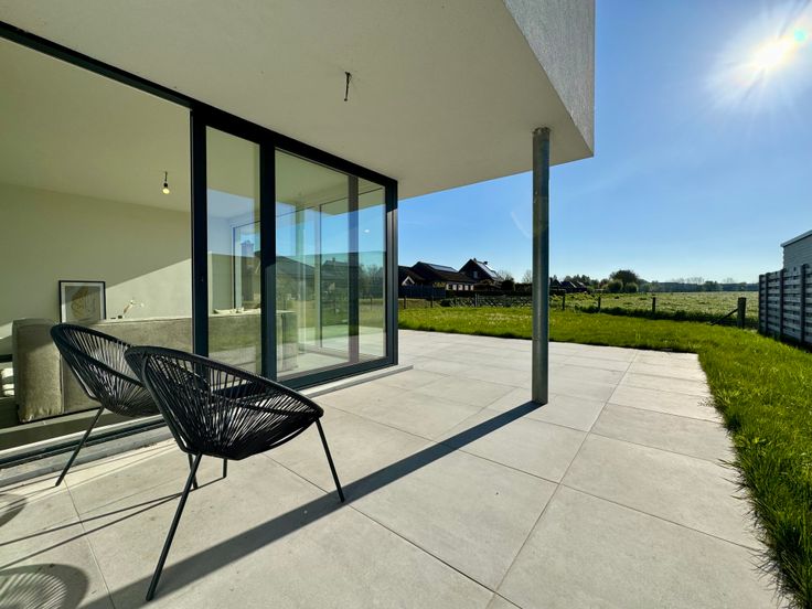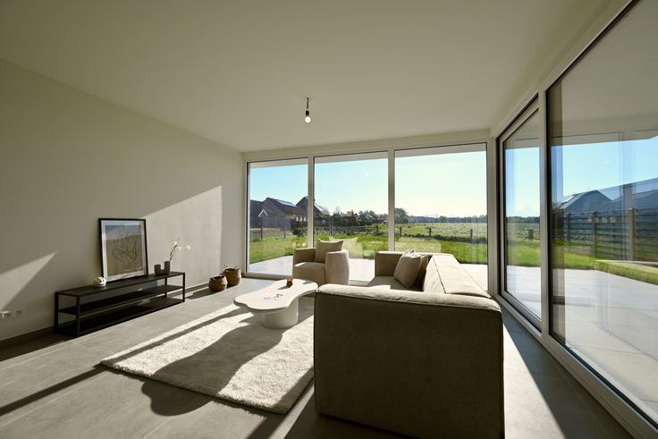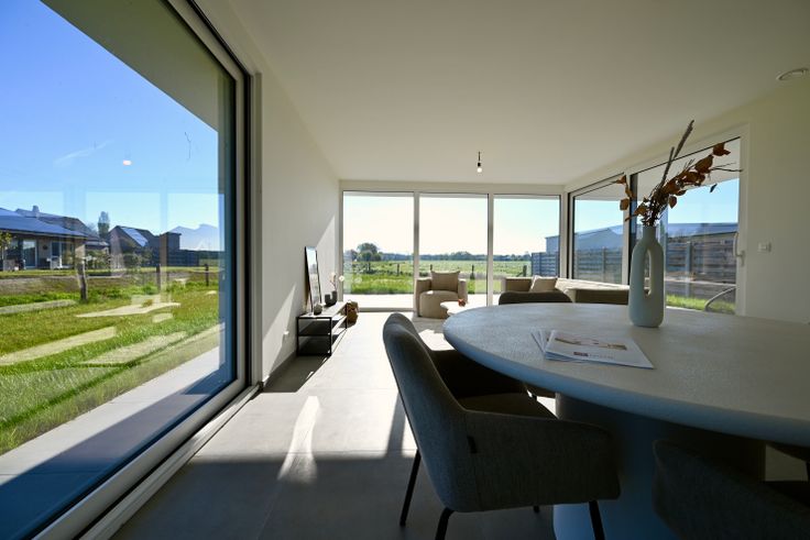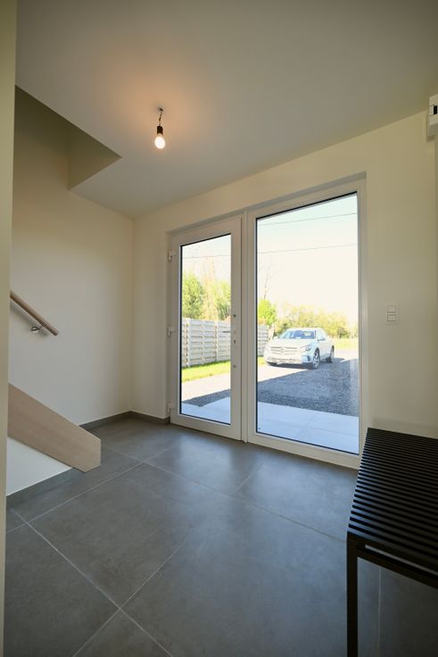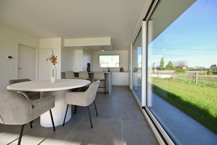 Strakke nieuwbouwvilla met prachtig uitzicht over de omliggende velden. De woning is perfect afgewerkt en voldoet aan ruimschoots aan alle energienormen en comfort zoals onder meer vloerverwarming (én koeling) met warmtepomp, zonnepanelen, regenput van 10.000L, e.d.m. De woning is gekwalificeerd als een BEN woning (= bijna energie neutraal) en is dus uiterst energiezuinig.