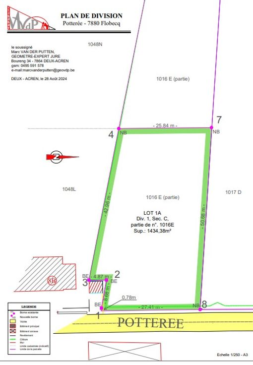 Prachtig perceel met een straatbreedte van 27,41m, een diepte van 50m, op een totale oppervlakte van 1434,38m².