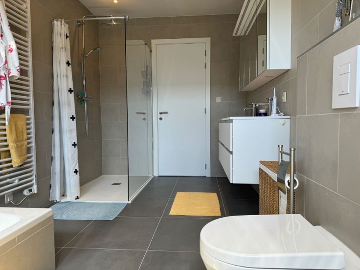 Deze moderne open bebouwing is gelegen in een kindvriendelijke wijk op wandelafstand van winkels, scholen en openbaar vervoer. Het gelijkvloers bestaat uit inkomhal met gastentoilet, zeer ruime lichtrijke living met open ingerichte keuken, wasplaats en ruime garage met sectionaal poort. Het verdiep telt een eerste slaapkamer, een ouderlijke slaapkamer met badkamer met ligbad, douche, dubbele lavabo met meubel en toilet, doorgang naar ruimte voor een dressing, de 2 kinderkamers zijn met elkaar verbonden door een tweede badkamer met douche en lavabo met meubel, apart toilet en een ruime berging. De woning beschikt over vloerverwarming op aardgas, zonnepanelen en is gebouwd volgens de huidige isolatienormen (E15).
