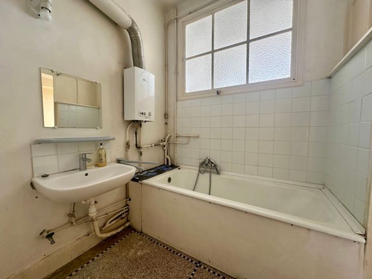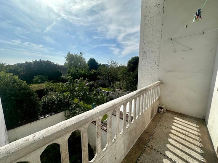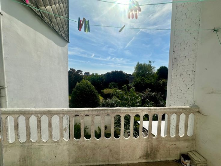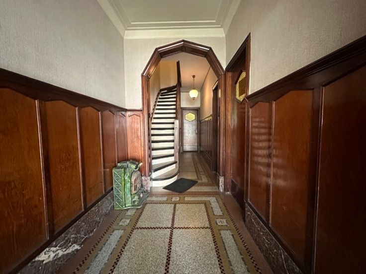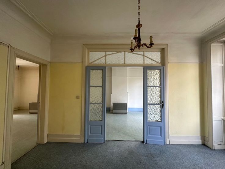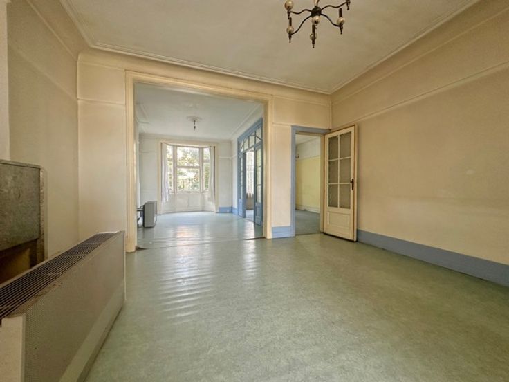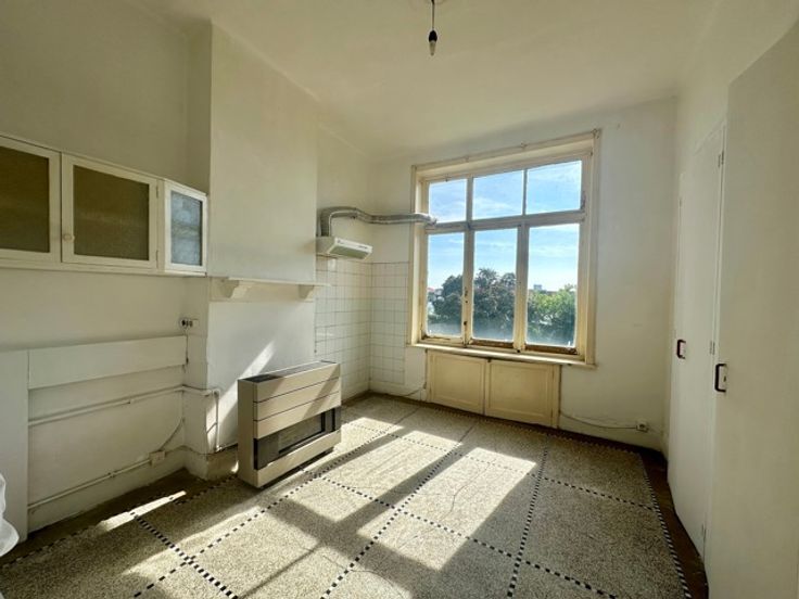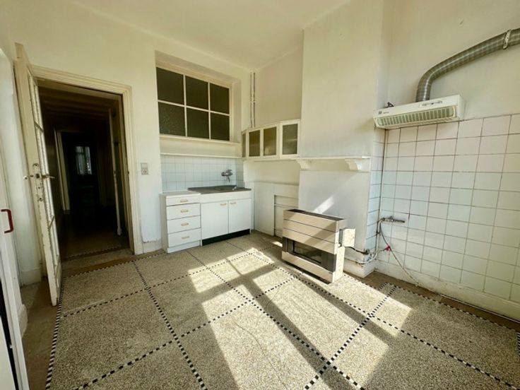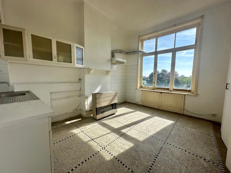 Laken, dicht bij het metrostation Pannenhuis, in een rustige straat met bomen, bieden wij u een te renoveren appartement aan met een bewoonbare oppervlakte van ongeveer 110m² en een terras met uitzicht op de tuin. Gelegen op de 1e verdieping van een klein gebouw geïnspireerd op Beau Art, is het appartement als volgt samengesteld: Inkomhal met apart toilet, woonkamer met houten vloer, keuken met granitovloer, 2 slaapkamers, badkamer, kelder. Het gebouw heeft een fietsruimte met directe toegang naar buiten. Je zult dol zijn op de hoge plafonds, het lijstwerk en de decoratieve elementen van de flat. Er is ook een optie om de garage te kopen. Kleine mede-eigendom met lage kosten. PEB F. Meer informatie op www.jamproperties.be