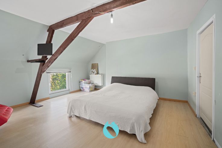 De zolderverdieping is volledig omgetoverd tot een ruime slaapkamer met een ensuite badkamer.