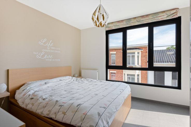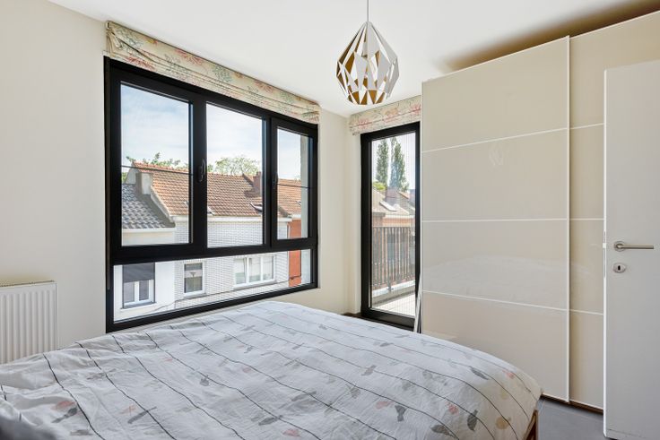 Gerenoveerd hoekappartement met twee slaapkamers en terras op de grens Schoten / Merksem. Dit modern en zeer lichtrijk appartement is gelegen op de tweede verdieping (zonder lift) van een kleinschalig renovatieproject uit 2019. U komt binnen via de inkomhal. De woonkamer met geïnstalleerde open keuken situeert zich in de volledige hoek van het appartement. De vele ramen zorgen hier voor een fantastische lichtinval.  Er zijn twee slaapkamers aanwezig (13 m² / 8 m²) en daarnaast omvat het appartement nog een volledig betegelde badkamer met inloopdouche, een apart gastentoilet met handenwasser en een technische (was)ruimte met de nodige aansluitingen. Het zuidelijk georiënteerd, gezellig terras is toegankelijk via de slaapkamer. Tot slot beschikt het appartement over een ondergrondse kelder en 4 privatieve zonnepanelen alsook een gemeenschappelijke afvalberging en fietsenberging! Troeven: + Recent gerenoveerd + Instapklaar + Conforme elektriciteit + Z-terras + Kelder + 4 zonnepanelen  + gemeenschappelijke fietsenberging Heeft u interesse en wenst u graag een bezoek ter plaatse in te plannen? Aarzel niet ons te contacteren op het nummer 03 337 50 70 of via info@vbvastgoed.be. Renovatieplicht: onbekend