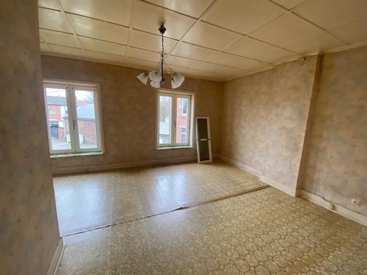 Maison avec garage et jardinet située à Gilly, rue des Nutons, 12 d'une superficie de 1 are et 77 ca et composée : - Au sous-sol : cave carrelée. - Au rez-de-chaussée (+/- 31,5 m²): séjour (17 m²), cuisine (10 m²) salle de bain (4,5 m²). - Au 1er étage (+/- 29 m²) : 2 chambres (11 m² et 18 m²). - Au grenier: surface non aménageable. La maison compte un jardinet à l’avant et un garage indépendant. Système de chauffage par convecteurs au gaz. Châssis PVC double vitrage. PEB : F - RC : 422€. Faire offre à partir de 60.000€. Les visites s'effectuent du lundi au vendredi de 16h30 à 19h. Uniquement sur RDV au 071/41.45.34.