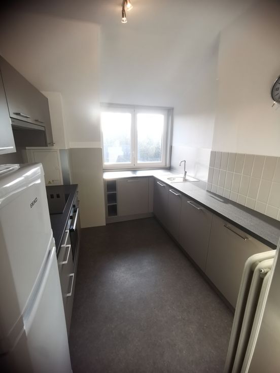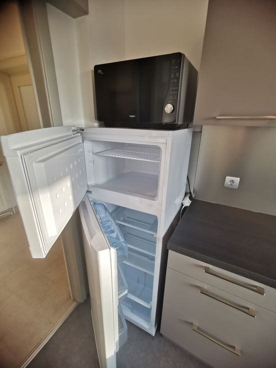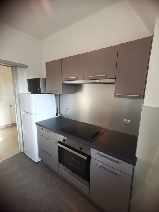 Bel appartement avec garage dans un quartier calme et résidentiel situé au 3ème étage (avec ascenseur) comprenant : Hall, WC, cuisine équipée (évier, plaque vitro, four, hotte, frigo, lave-vaisselle), salle de bain avec douche, une grande chambre.