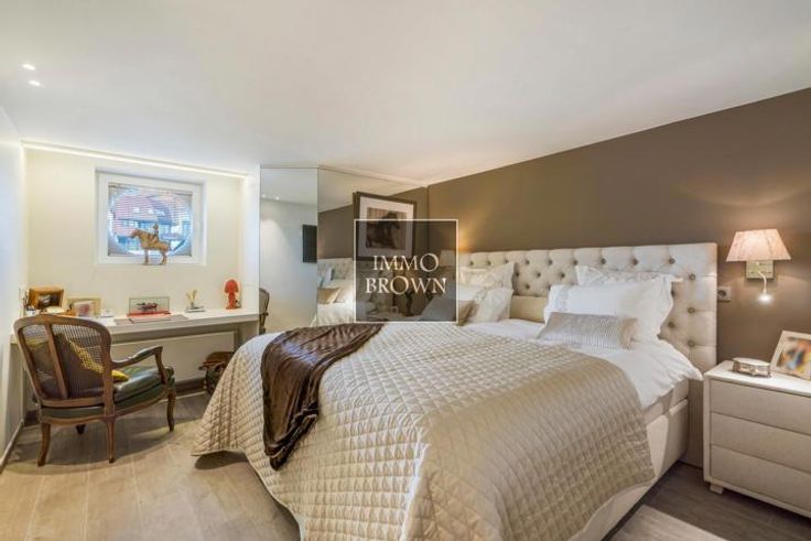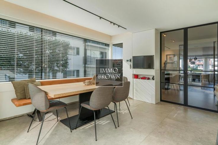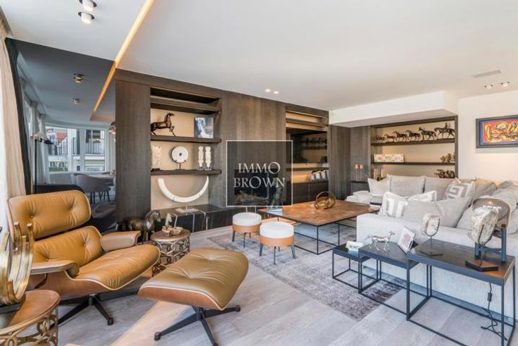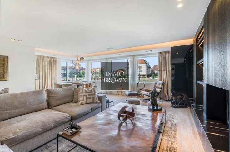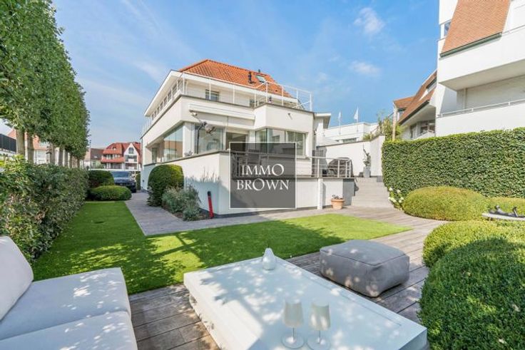 Te koop Knokke koppelvilla op 100 meter van zee en strand. Deze bijzonder luxueuze dubbelwoonst met zeezicht en zeer ruime garage voor 4 wagens ligt in het commercieel centrum van Knokke aan het Casino waar het plein autovrij zal komen. Indeling: de koppel villa kent een ruime inkomhal met gastentoilet en meerdere garderobekasten. De lichtrijke woonkamer is voorzien van mooie raampartijen met driedubbel glas, ingemaakte kasten en een gas haard afgewerkt met natuursteen. De prachtige keuken voorzien van alle comfort, voorraadkasten en gashaard, is volledig ingericht met kookeiland en geeft uit op het mooie terras met zicht op de tuin. De stadstuin is onderhoudsvriendelijk. Op het eerste verdiep: Magnifieke master slaapkamer met aangrenzende ruime dressing en ruim 2de terras met aansluitend een volledig ingerichte badkamer met ligbad, douche, dubbele lavabo en toilet uitgevend op een 3de terras. Alsook is er een tweede slaapkamer met inbouwkasten. Tweede verdieping: ruime slaapkamer met inbouwkasten en aangrenzende doucheruimte met bureauhoek. Toegang tot een dakterras. Gelijkvloers: vierde slaapkamer met inbouwkasten en aangrenzende doucheruimte met infraroodcabine. Ruime garage voor 4 auto's en wasruimte. Oprit met 2 staanplaatsen. Deze parel van een villa is afgewerkt met zeer hoogwaardige materialen en voorzien van alle comfort waaronder alarm, domotica, camera's, airconditioning,...