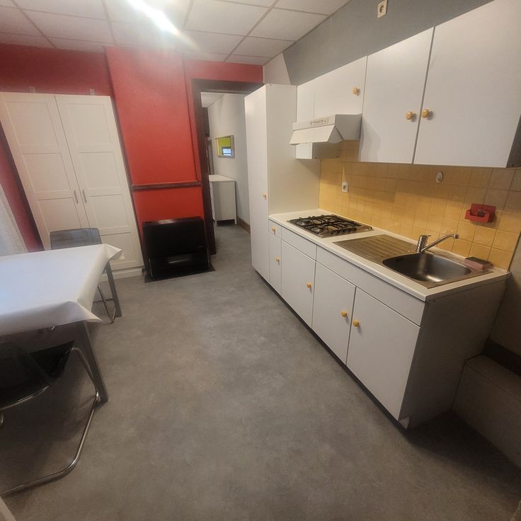 Studio 30m2 meublé au rez : convecteur gaz, cuisine équipée, frigo-congélateur , divan-lit ,salle-de-bains, rideaux , tentures. . 595€ + charges privées.(eau, gaz, électricité)+deux mois caution . 0476/48.64.12