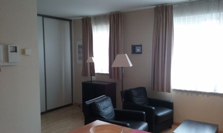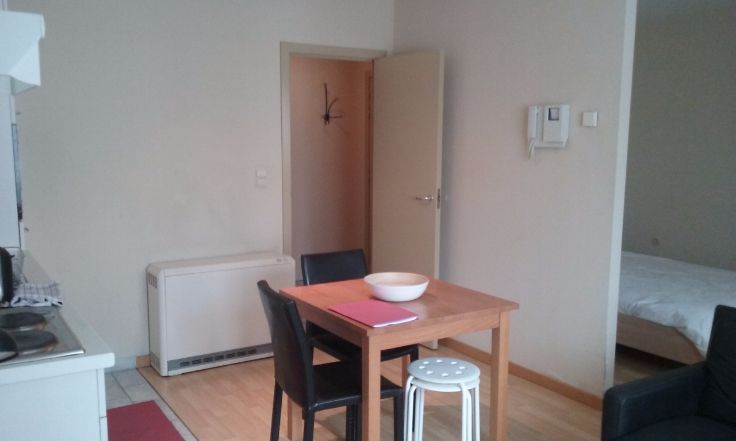 LIBRE le 01/09 - Flat/Studio meublé. Excellente situation CEE (Place des chasseurs Ardennais avec son marché du vendredi très sympathique), à côté d'un grand supermarché Delhaize, 1er étage avec ascenseur, 38 m², cuisine, salle de bain avec douche, calme, entièrement équipé (table, chaises, fauteuils, lit, 2e matelas, cuisine équipée, coffre fort intégré, bel espace de rangement, aspirateur, une nouvelle TV sera placée, parlophone, Wifi, 760 EUR + 80 EUR charges all-in, sauf internet. Libre le 01/09. Contrat minimum 1 an. contact : 0495 123 987 .Available 01/09 - Furnished Flat / Studio . EEC excellent location (Place des chasseurs Ardennais with its very nice Friday market), next to a large supermarket Delhaize, 38 m², 1st floor with elevater, kitchen, bathroom with shower, quiet, fully equipped (table, chairs, bed, 2nd mattresse, kitchen, good storage, vacuum cleaner, a new TV will be placed, videophone, Wifi, telephone, very secure building, 760 EUR + charges € 80 all-in except. internet, free 01/09 contract minimum 1 year Contact:.. 0495 123 987
