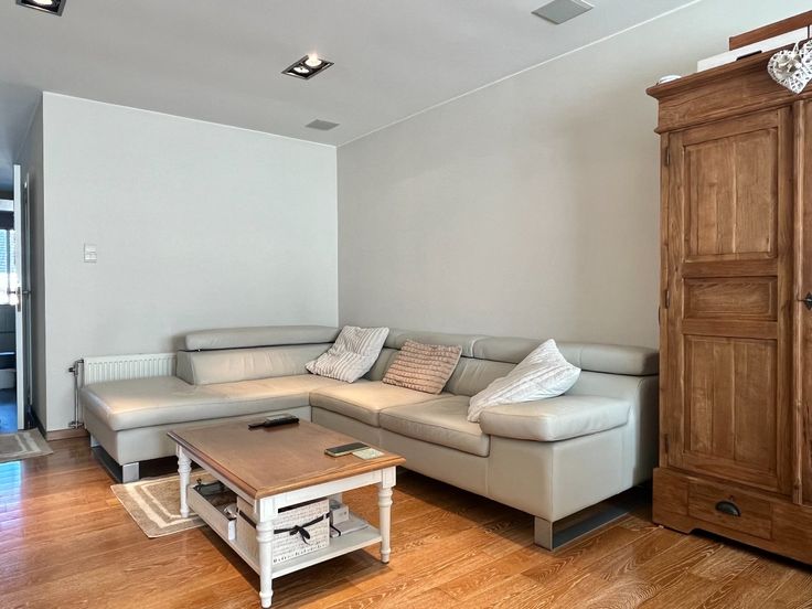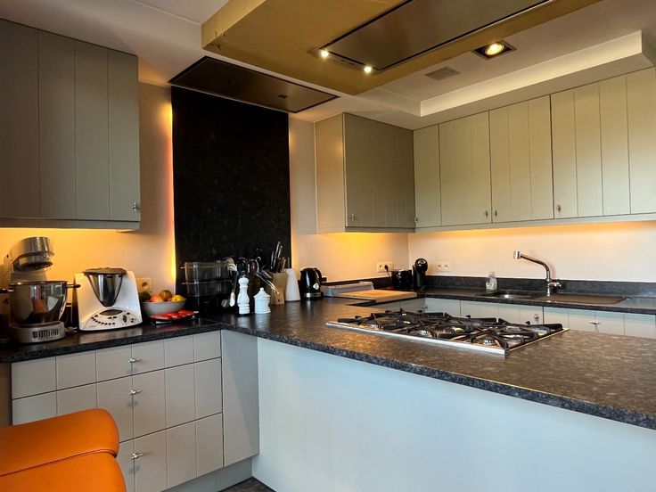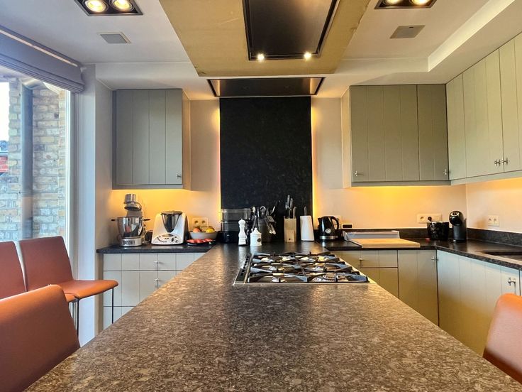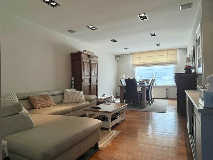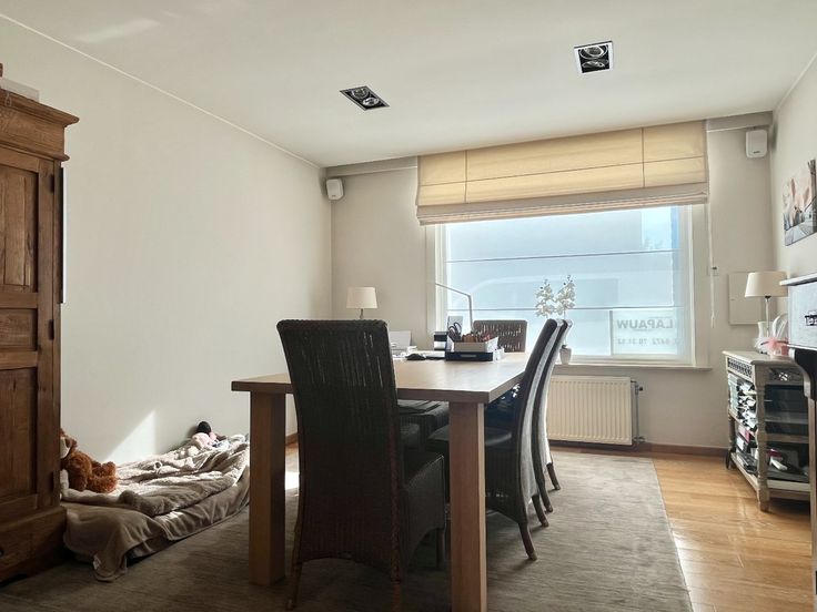Bij het binnengaan van de woning tref je direct een apart gastentoilet in de gang. Vervolgens kom je in de ruime leefruimte met veel lichtinval, wat de ruimte bijzonder uitnodigend maakt. Aansluitend vind je de vernieuwde, volledig uitgeruste keuken, voorzien van alle nodige toestellen. De absolute blikvanger hier is het SMEG fornuis. Vanuit de keuken heb je een mooi uitzicht op de tuin en het terras.