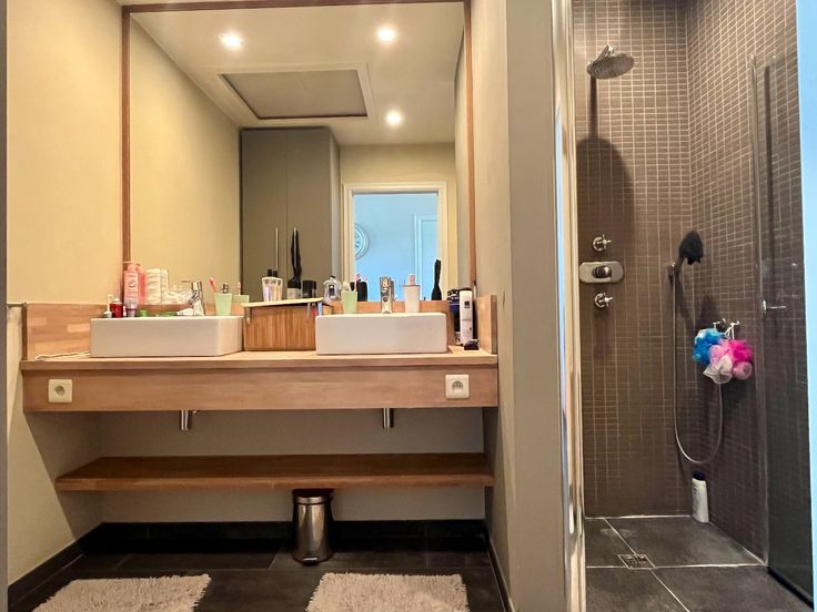 Op het gelijkvloers bevindt zich de badkamer, uitgerust met een dubbele lavabo en een douche. Er is ook een handige bergruimte voor een wasmachine en een praktische, droge kelder voor extra opslag.