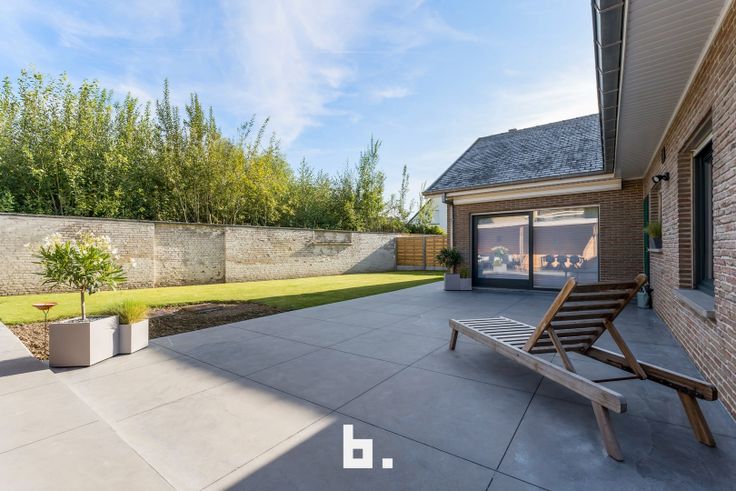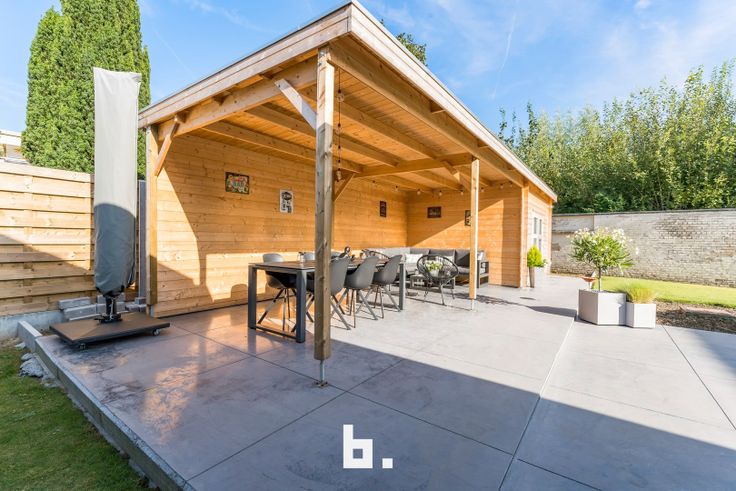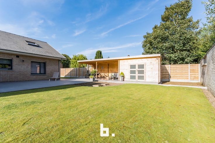 Buiten geniet u van een recent aangelegd terras met een buitengebouw.