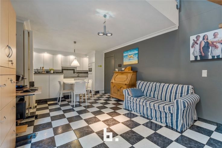 Het woongedeelte, op het gelijkvloers voorzien van een garage met wasplaats, beschikt eveneens over een uiterst gezellige, onderhoudsvriendelijke tuin met terras. Verder is er op het gelijkvloers een volledig geïnstalleerde keuken en een apart toilet.