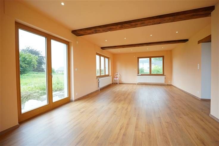 Sorry er is geen nederlandse vertaling beschikbaar. Trevi Rasquain vous propose à la location cette maison entièrement rénovée, idéalement située à Grand-Marchin, avec un grand terrain de 2500m² ! La maison se dispose comme suit : Hall d'entrée, cuisine (pas de frigo), spacieux living de 33m², bureau de 15m², buanderie. Au 1er étage, 3 chambres (12m², 12m² et 33m²) et une salle de douche (2 éviers, wc, douche). Grands greniers aménagés au 2ème étage ! Cave et garage au sous-sol. Terrasse et grand jardin idéalement orientés plein SUD ! Emplacements de parking extérieurs. Aspects techniques : chaudière au mazout, châssis en triple vitrage, volets, PEB F. Disponible immédiatement. 2 mois de garantie locative. Loyer : 1200€/mois. Plus d'infos : 085.25.39.03 ou location@trevirasquain.be