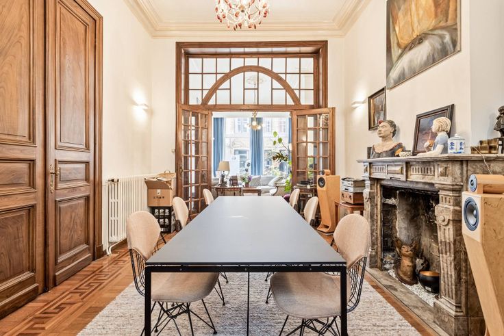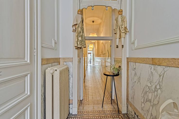 Deze eigendom wordt aangeboden via Pre-sale op zaterdag 14/09/24. De vermelde prijs is een instelprijs. Wil je een afspraak vastleggen of wens je meer info, neem dan contact op met Maïté Ramault - 0472 18 40 15 - maite.ramault@dewaele.com.Deze statige burgerwoning bevindt zich op een unieke locatie in Brugge, in de Hoogstraat. Naast de ligging valt de woning ook op door het uitzonderlijk goed bewaarde interieur. De 19e-eeuwse neoclassicistische gevel straalt elegantie uit, terwijl het interieur een rijke geschiedenis onthult. Bij binnenkomst word je betoverd door de imposante inkomhal, die zich uitstrekt over de volledige diepte van het huis. De marmeren trappen, de originele lambrisering en mozaïektegels geven deze ruimte een unieke uitstraling. De hoge dubbele deuren en rondbogen leiden je naar een indrukwekkende trap met een schitterend glas-in-loodraam, dat zorgt voor een mooi natuurlijk licht.De salon-suite, bestaande uit een bureau, zit- en eethoek, biedt een zelden geziene afwerking. De hoge plafonds met moulures en rozetten, het zorgvuldig bewaarde antieke parket, en de drie marmeren schouwen voegen extra grandeur toe. De orginele details zoals de gesculpteerde deurportalen en de weelderige gietijzeren radiatoren brengen de ruimtes tot leven. Aan de achterzijde van het pand, met directe toegang tot de charmante stadstuin, is er een moderne keuken met gezellige eethoek. De woning is volledig onderkelderd, wat extra opslag- en werkruimte biedt.Op de eerste verdie