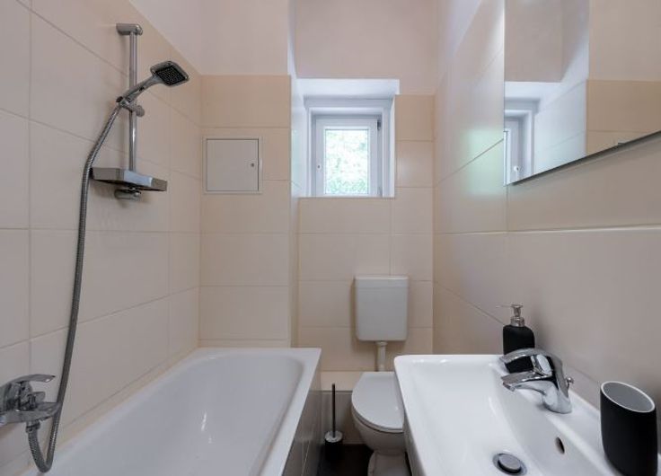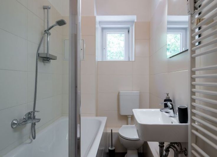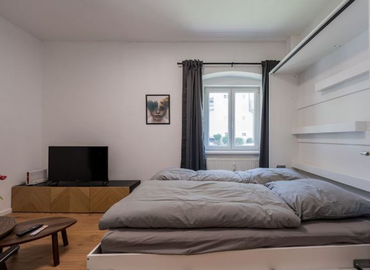 Cet appartement spacieux de 35 m² est idéalement situé et astucieusement conçu pour maximiser l'espace. Il dispose d'un salon et d'une chambre combinés, ce qui le rend à la fois confortable et fonctionnel. L'appartement comprend une grande cuisine dînatoire, parfaite pour manger et cuisiner, ainsi qu'un débarras pratique. La salle de bain est équipée d'une baignoire confortable, offrant un refuge relaxant en fin de journée. La cuisine entièrement équipée comprend une cuisinière, un réfrigérateur, un four, un grille-pain et une bouilloire, ainsi que tous les couverts nécessaires et un congélateur. Les équipements supplémentaires comprennent un lave-linge dans l'appartement, une télévision, une connexion Wi-Fi haut débit et un espace de travail dédié, ce qui le rend adapté à la fois aux loisirs et au travail. Le système d'interphone de porte ajoute une couche de sécurité supplémentaire.