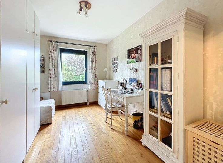 Magnifique appartement (2001) au 1er étage d'un immeuble avec ascenseur et son agréable terrasse bien orientée, offrant un très beau séjour lumineux avec accès à la terrasse, cuisine ouverte entièrement équipée, hall d'entrée avec porte blindée, deux belles chambres, salle de bains et buanderie. Une cave, un grand garage fermé et un emplacement de parking privatif extérieur viennent compléter ce superbe appartement. Très bon confort technique, PEB A et situation de 1er choix dans le quartier prisé des "Quatre Sapins". Charges mensuelles : provision de 225€/mois pour communs et eau privative