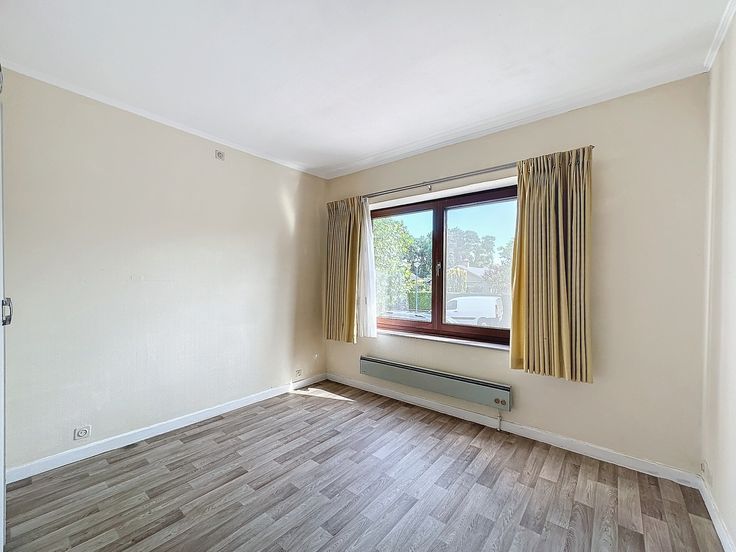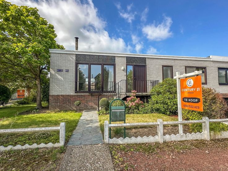 Rustig gelegen koppelvilla-bungalow nabij het Hannecartbos met een perfectie zon-oriëntatie. Praktische indeling: inkomhall met apart toilet, living met open haard en toegang tot het zonneterras, apart ingerichte keuken, 3 slaapkamers, badkamer. Zonnige tuin en zonneterras. Volledig onderkelderd met o.a. een grote garage.