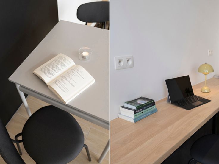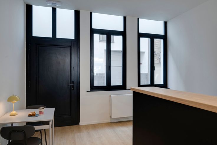 Dit statige pand werd van boven tot onder onder handen genomen. De gevel is parelwit en de stijlvolle zwarte aluminium en houten ramen gloednieuw, net zoals de gehele binneninrichting. Hier werd gekozen voor een zwarte toog met houten werkblad. En verder… doe jij volledig