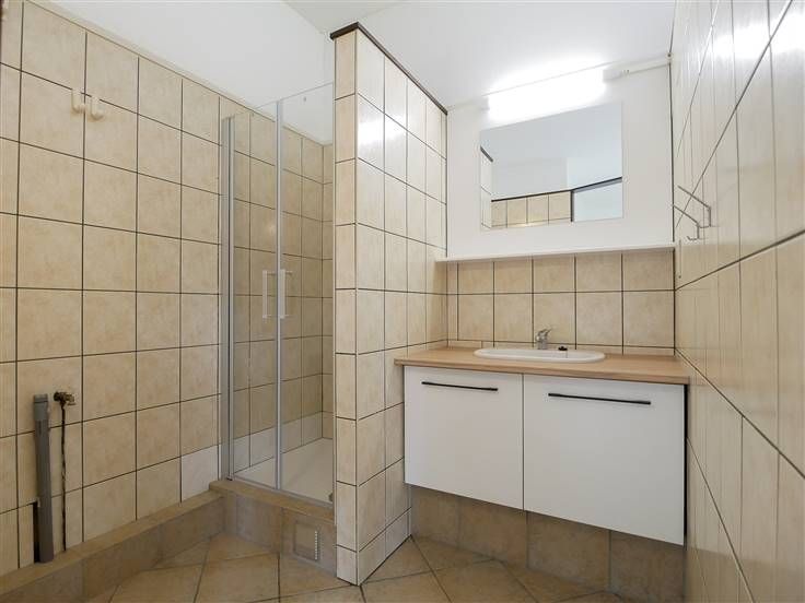 Het betreft een gelijkvloerse studio (35m²) gelegen in een groot appartementsgebouw.