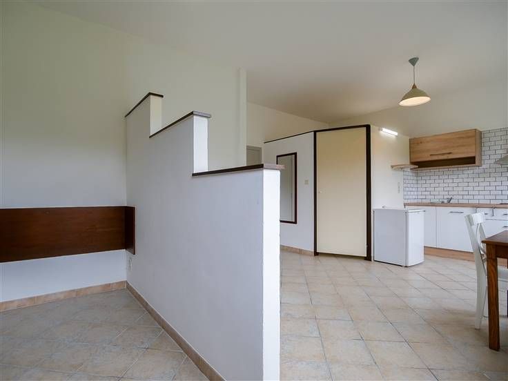 Aansluitend bevindt zich een ruime leefruimte voorzien van een keuken en een aparte slaapplaats.