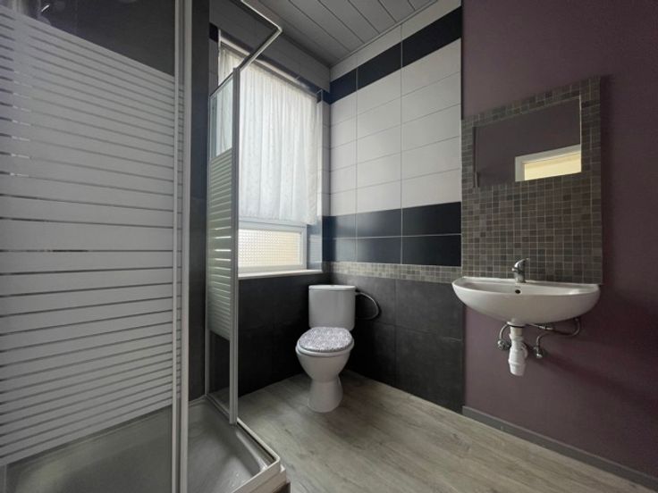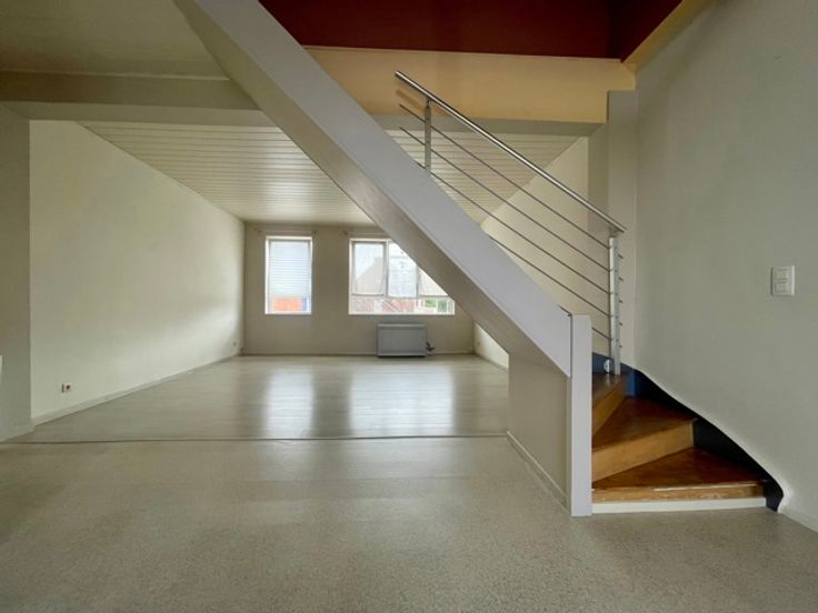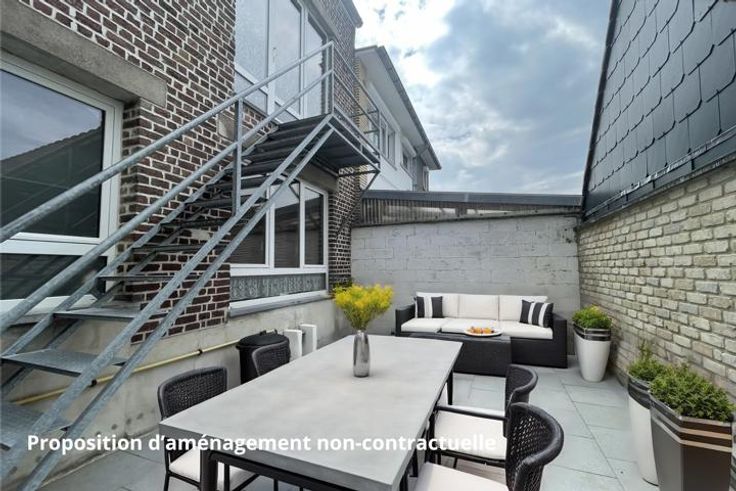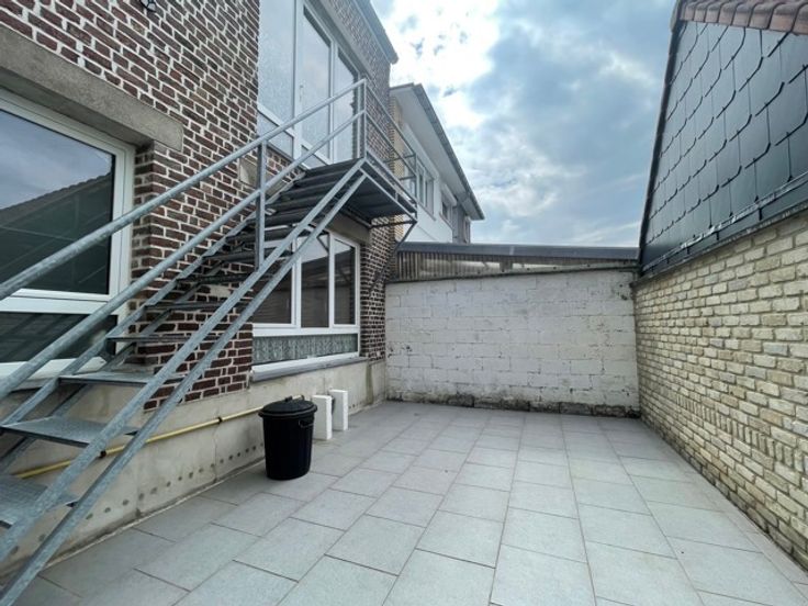 Dans un petit immeuble magnifique duplex avec terrasse comprenant un séjour open space avec cuisine semi équipée, une salle de douche avec wc, à l’étage deux belles chambres