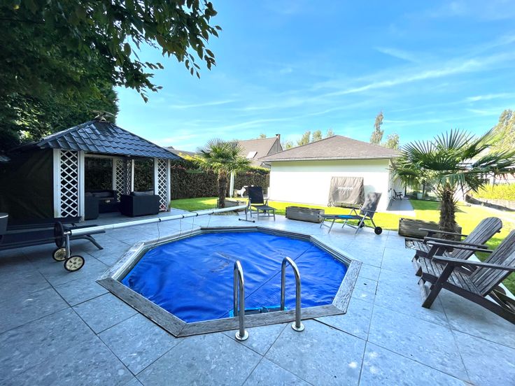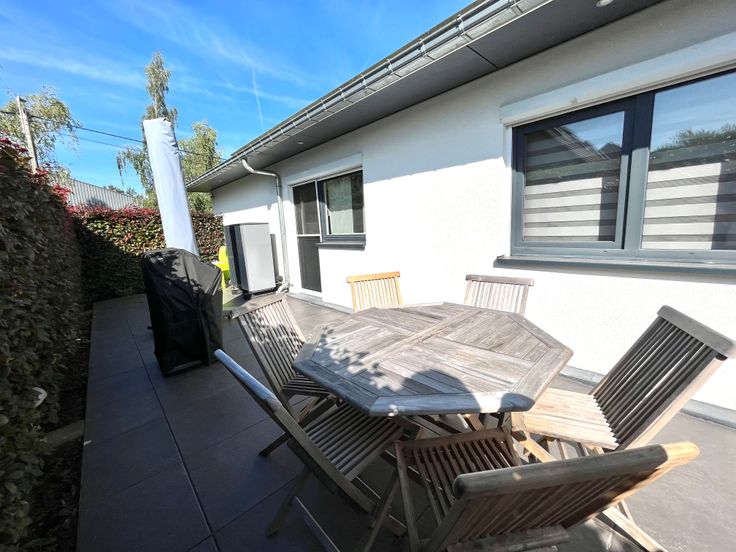 Twins-immo agence à 1,21% de commission *a le plaisir de vous présenter cette villa 4 façades dans un quartier résidentiel de l’agréable commune de Neupré. Cette construction de plein pied, repose sur une parcelle entièrement aménagée de 800m2, avec portail, garage, allée, terrasse, piscine chauffée, éclairage extérieur, pelouse et abris jardin. La maison se compose: d’un hall d’entrée avec WC séparé, d’une cuisine équipée ouverte sur le living, d’un second salon, d’un bureau, d’une buanderie aménagée, d’une suite parentale avec dressing et SDB privative, d’une seconde SDB et de 2 autres chambres.