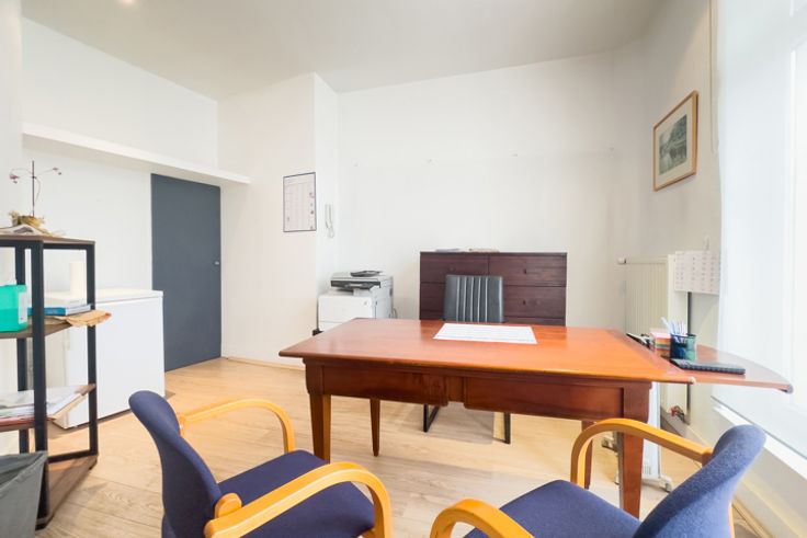 POELART wijk - Tegenover het Paleis van Justitie | 3 aparte units van totaal 280 m² maar kunnen met elkaar verbonden worden - binnen een co-pro in een prachtig gebouw | Ideaal voor investeringen of advocatenkantoor | Zeer goed bereikbaar en dichtbij vele voorzieningen (winkels, vervoer etc.) | Unit 1, op de 1e: Prachtige kantoorruimte van +- 120 m² met vrij zicht op het paleis, open ruimte voor 6 werkplekken en grote vergaderruimte, inbouwkasten, sanitair en ingerichte kitchenette - airconditioning, archief/computerruimte , verwarming privé, balkon | Unit 2, op het gelijkvloers en mezzanine: Casco commerciële ruimte/kantoren van 140 m² verdeeld over twee niveaus (toegang via rue aux Laines) | Unit 3, op de begane grond, klein gemeubileerd en zelfstandig kantoor van 20 m² met eigen badkamer (momenteel verhuurd) | Gebouw met lift | Neem contact op met ons Corporate-team op 010/23.87.07. Stedenbouwkundige informatie op aanvraag verkrijgbaar bij het agentschap (RU1502/2024).