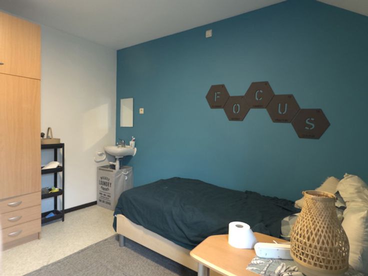 - Badkamer: De badkamer wordt gedeeld met 3 andere studenten.