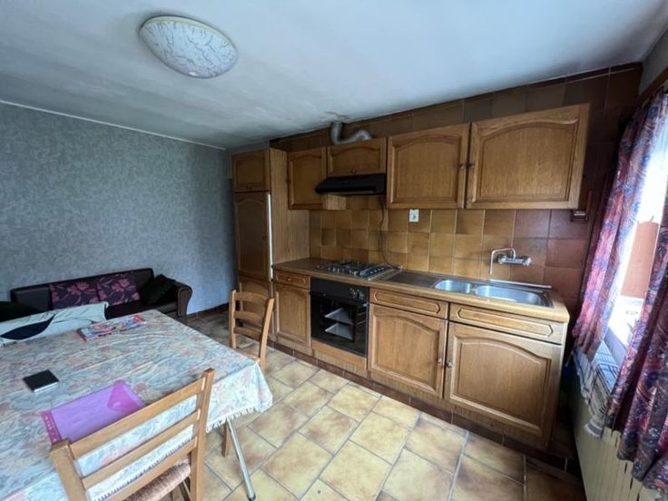Une maison d'habitation à rénover partiellement, laquelle comprend : Sous-sol : cave Rez-de-chaussée : living, cuisine, buanderie, salle de bains, une chambre 1er étage : deux chambres Pas de grenier Jardin, garage et passage latéral carrossable. Chauffage central au gaz PEB F Electricité à revoir