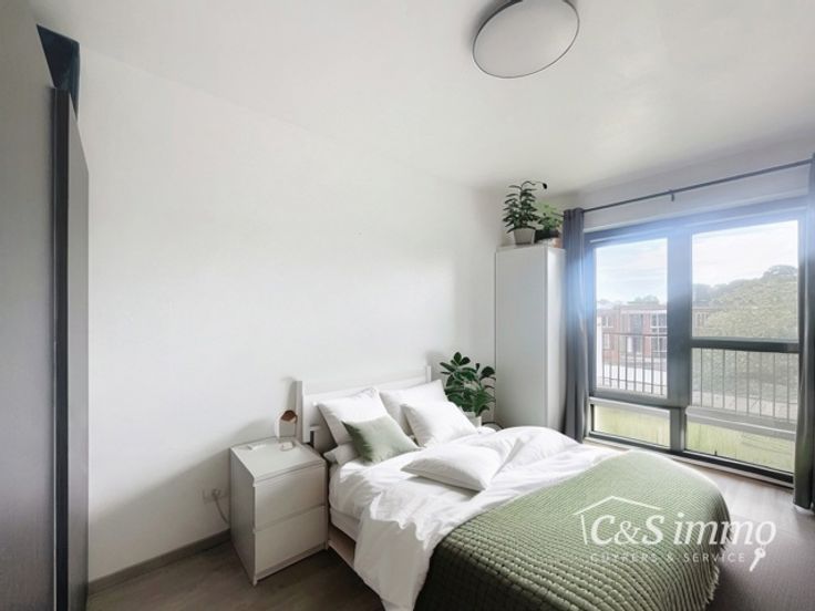 Instapklaar, recent 2-slaapkamerappartement met tof terras op de 2e verdieping. Het gebouw dateert uit 2016. De nachthal biedt toegang tot de verschillende ruimtes. De leefruimte met open keuken ligt op een tegelvloer en biedt een mooi uitzicht op de groene, gemeenschappelijke tuin. Het terras van 10m², aangelegd met kunstgras, is zuidgericht. De open, geïnstalleerde keuken met eiland is voorzien van moderne toestellen, waaronder een inductievuur, dampkap, koelkast en vriezer. Daarnaast is er een berging/technische ruimte met aansluiting voor een wasmachine en ventilatiesysteem. Het appartement beschikt over twee slaapkamers, waarvan de grootste directe toegang biedt tot het terras. De badkamer is uitgerust met een inloopdouche en dubbele lavabo. Er is ook een aparte wc. Grote gemeenschappelijke tuin en fietsenstalling voor 2 fietsen. Alle nutsvoorzieningen zijn apart geregeld. Dit appartement is bovendien ideaal gelegen, vlakbij Zwemvijver Boekenberg, Boekenbergpark en Boelaarpark.