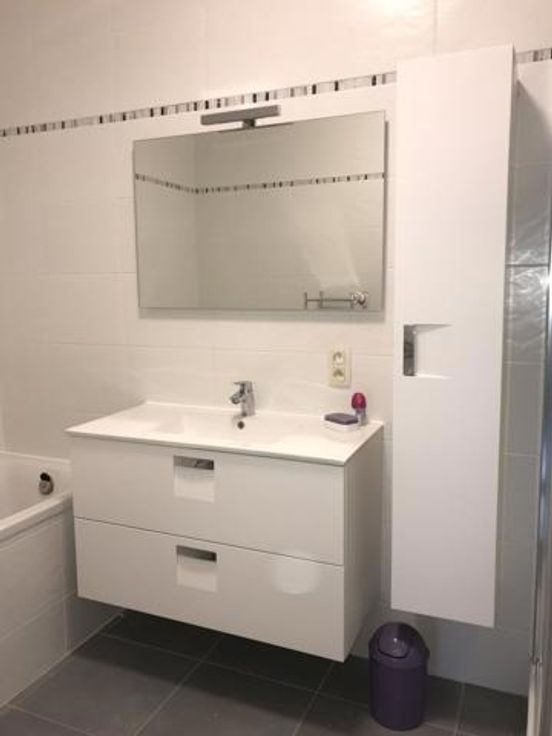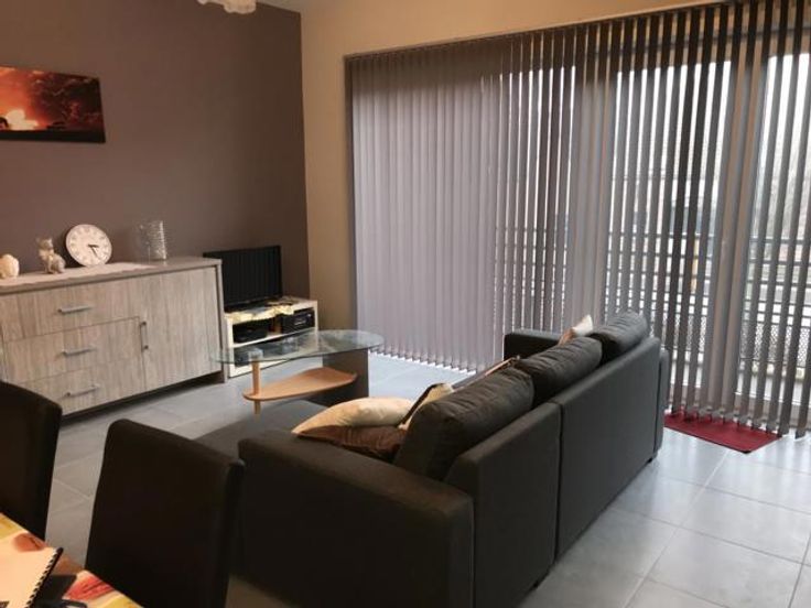 "Jurbise route d'Ath 293/19 à la Résidence "Les Bruyères", très bel appart meublé offrant: séjour avec cuisine équipée, 2 ch, hall de nuit, WC séparé, SDB, buanderie, terrasse, cave, parking extérieur, jardin commun. Le bien dispose de luminaires, stores intérieurs et vidéophone. Libre immédiatement. Loyer de 880 €/mois + 90€ /mois de charges com forf. " La cuisine se compose d'une taque vitrocéramique, un four électrique, un micro-ondes, une hotte, un réfrigérateur/freezer, un évier, un lave-vaisselle et meubles. La SDB comprend un bain, une douche, un lavabo et meubles. Le chauffage est électrique par accumulation dans le séjour et par convecteur dans les autres pièces. L'immeuble est arboré d'un joli jardin commun avec vue prairie à l'arrière. Le bien se situe au centre de Jurbise à proximité de toutes les commodités: commerces, pharmacie, restaurants, gare à 500m, axe routiers, à 10 min du Shape en voiture. Bail de 3 ans et 2 mois de garantie. Pour visites et renseignements: AIZ 065/840.640
