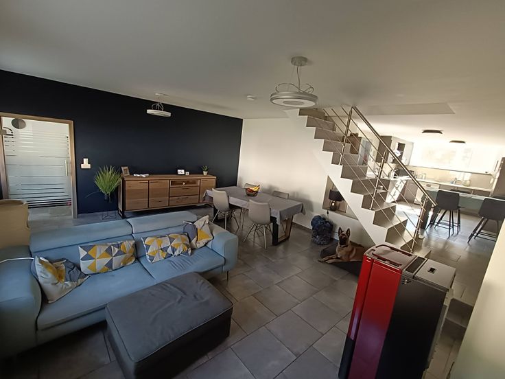 La maison est déjà meublée (sauf les chambres): divan, TV, tables, chaises, vaisselle, machine à laver etc;