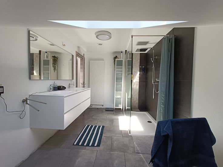1er: Couloir, 2 grandes chambres et une moyenne, WC et SDB (douche + double évier);