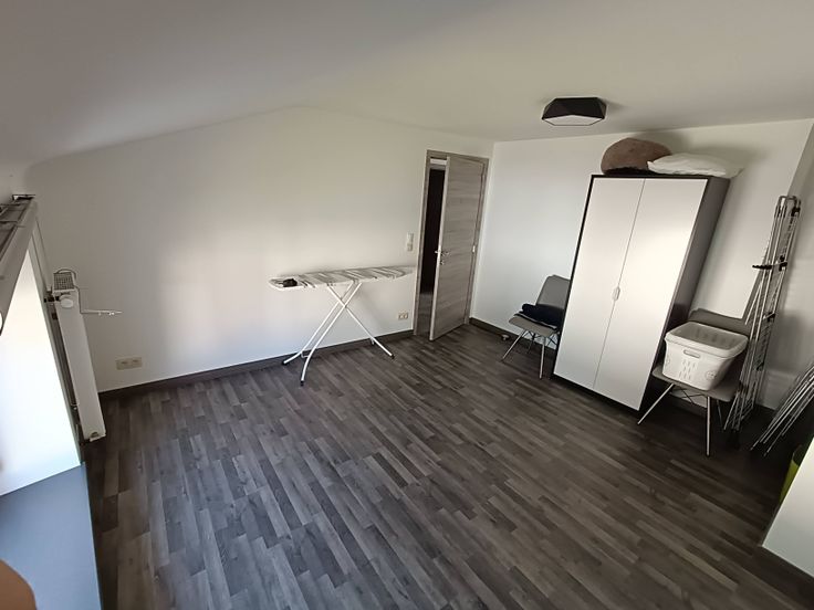 1ère chambre d'environ 14m² orientation nord, coté rue (photo: actuellement une pièce pour le linge);