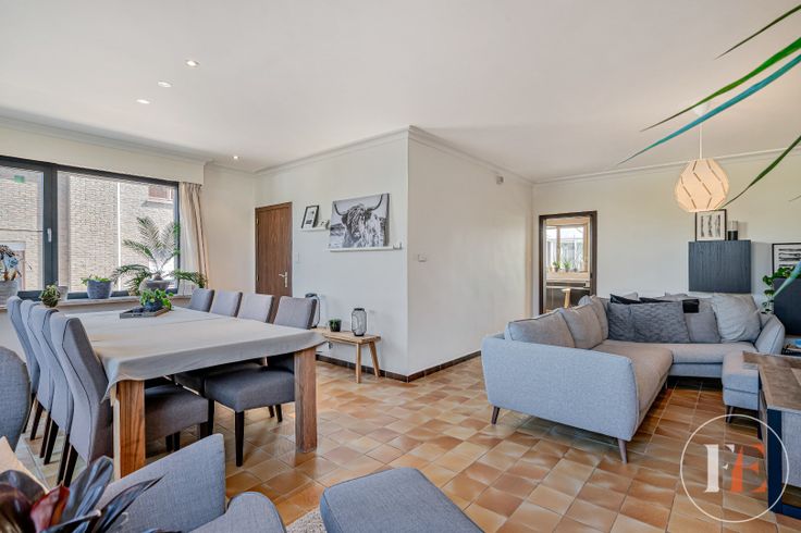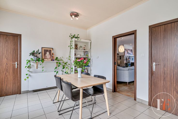 Via de inkom kom je in de hal die toegang geeft tot de keuken en de woonkamer.