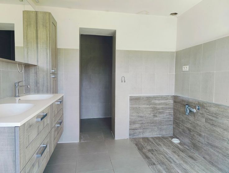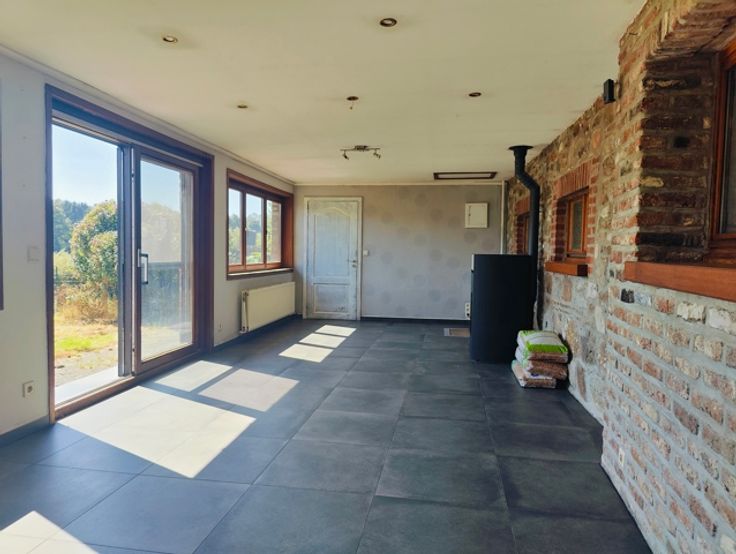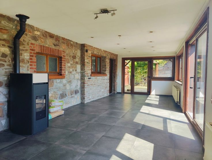 Citerne à eau de pluie, Chauffage au mazout, Poêle à pellets dans le séjour, Certificat de conformité électrique : non conforme, Relié aux égouts, Revenu cadastral : 825,00 €.
