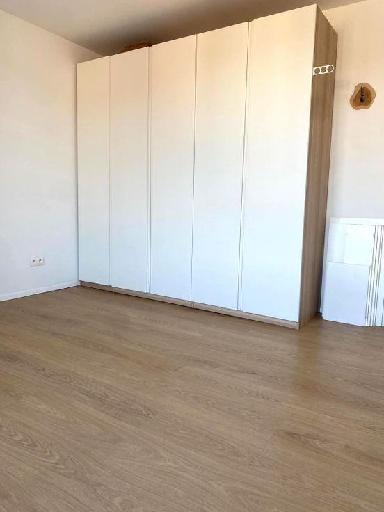 Achter de inbouwkasten op maat gemaakt is er een tweede toilet, ruimte voor was-en droogkast , alsook opbergruimte.