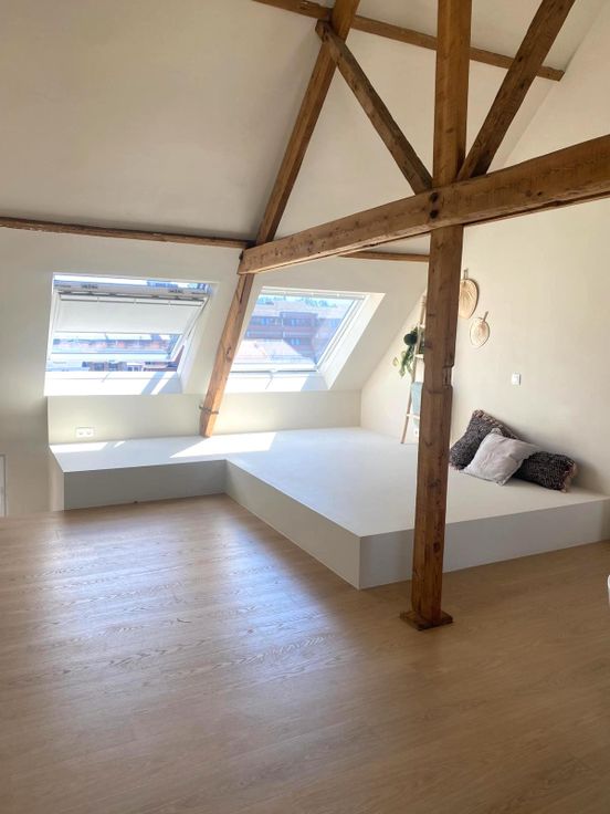 Het dak werd voorzien van veluxramen met verduistering, werd geïsoleerd én deze ruimte is voorzien van airco die zowel koelt als warmt.