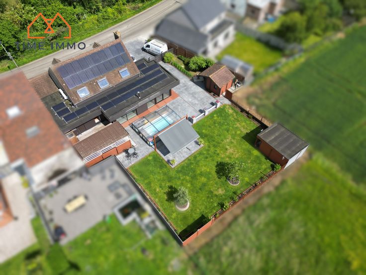 Confort : Très bon PEB B proche du A, panneaux photovoltaïques, grand jacuzzi, jardin, terrasse, 2 chalets de jardin, double vitrage PVC, climatisation chaud/froid, pompe à chaleur, citerne à eau de pluie avec groupe hydrophore, situation idéale.